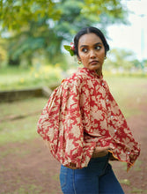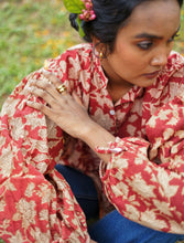 'Malti' Limited Edition Hand-blockprinted Kalamkari Boho Top (Red)