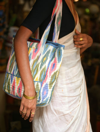 'Arya' Handwoven Ikat Tote Bag in Pure Cotton