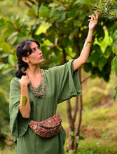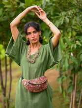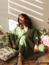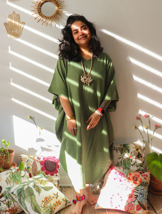 'Zikr' Handloom Cotton Kaftan Dress in Vintage Green